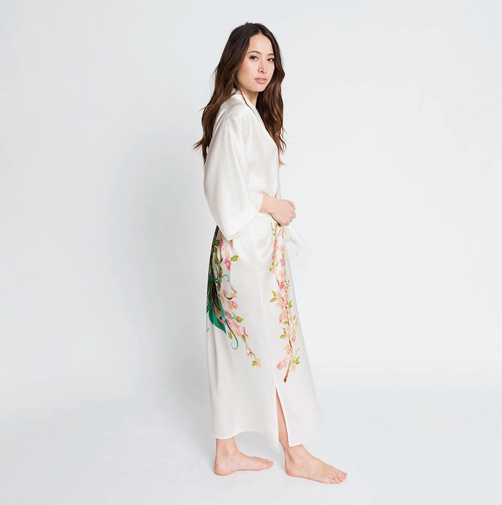 The Peacock Hand Painted Silk Robe
